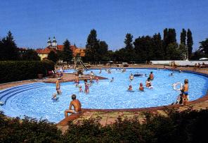 - Je nach Jahreszeit können Sie entweder im Hallenbad oder im Freibad schwimmen gehen. Im Freibad finden Sie neben der Liegewiesen ein Babybecken für die Kleinsten, ein Nichtschwimmerbecken mit Rutschbahn und ein 50-Meter-Becken mit Sprungturm. Im Hallenbad finden Sie neben dem 25-Meter-Becken auch ein Dampfbad vor. Bild vom Freibad