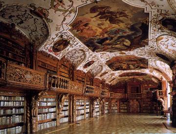 - Die noch bewohnte Zisterziensierinnenabtei ist baulich mit der Basilika verschmolzen. Zu besichtigen ist nur der Klosterbibliotheksaal. Dieser wurde 1726 im Übergangsstil vom Hochbarock zum Rokoko vollendet. Besonders zu erwähnen sind die kostbaren Holzschnitzerein sowie die Deckengemälde und die Stuckarbeiten. Bild Homepage